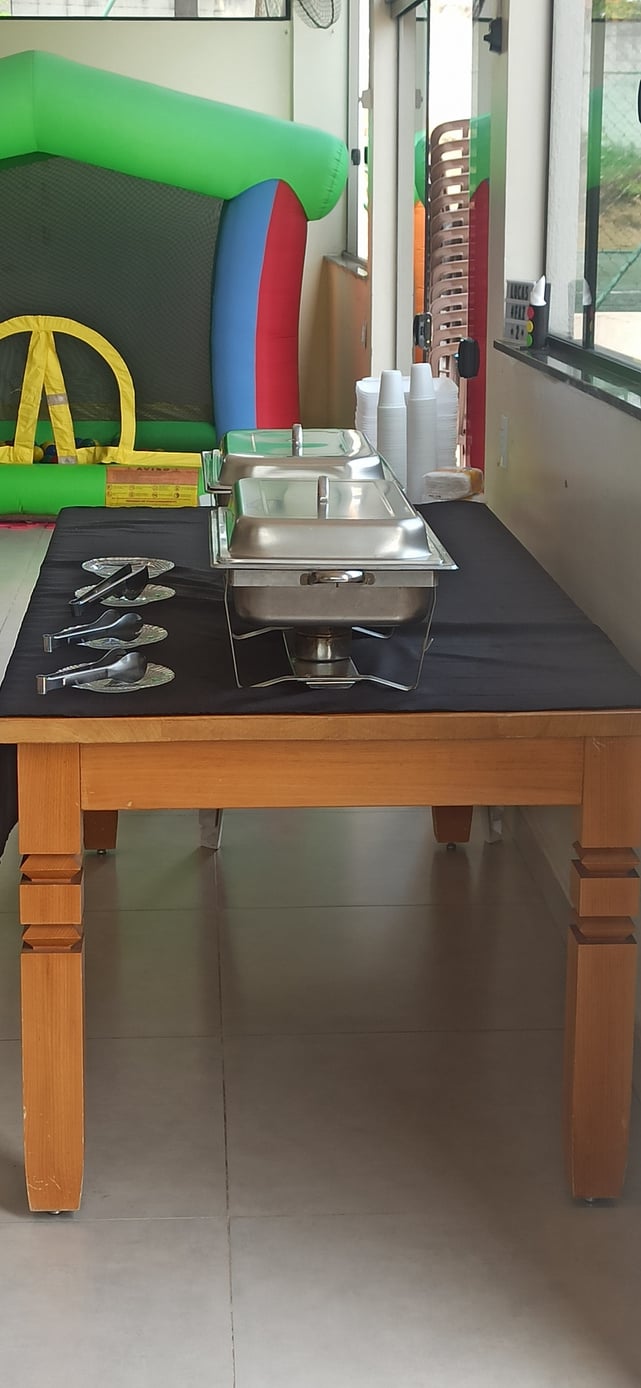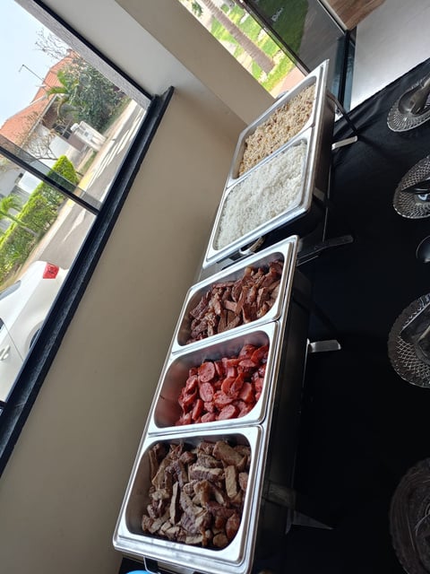 Nesta modalidade, oferecemos um serviço que inclui um churrasqueiro profissional e um ajudante. Cuidamos da montagem da mesa de serviço e fornecemos todos os equipamentos e utensílios necessários, como rechauds, pegadores e travessas. Garantimos que tudo esteja montado e pronto, para que seus convidados possam simplesmente se servir e desfrutar.