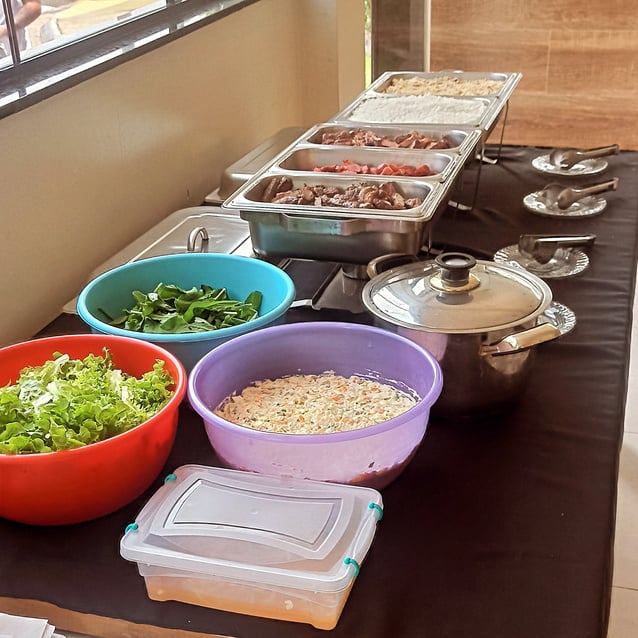 Oferecemos serviços completos de buffet e churrasco a domicílio para confraternizações, eventos sociais e corporativos. Cuidamos de todo o processo, desde o preparo dos alimentos até a realização do tão apreciado CHURRASCO, que é o nosso destaque. Além disso, disponibilizamos uma equipe de profissionais especializados, incluindo cozinheiros, churrasqueiros e garçons, para garantir que seu evento seja um sucesso.